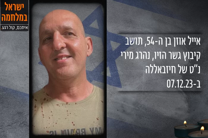 מלח הארץ, אייל אוזן, נהרג ביום חמישי בגבול הצפון מירי נ"ט בזמן שעיבד את אדמותיו ביישוב מתת שם גידל נשירים וטיפל בלולים. בנו ניב אוזן, סיפר היום לחיים הכט בתוכנית "מדברים ברדיו": "היינו מודעים לסכנות ומאוד נזהרנו מלהגיע למטעים וללול בגזרה הצפונית. אבא שלי אחרי 60 ימים של המלחמה שלא הגיע לשטח לא יכול היה לעזוב את המקום. באותו יום הוא מכר טרקטור לחבר ובחזרה הביתה הוא נכנס למטעים וספג את ירי הנ"ט. אבא שלי כל החיים דאג למשפחה שלו ולי, היינו עובדים יחד בסחר בטרקטורים ואחרי המכירה הוא התקשר אליי וסיפר לי על המכירה. תוך כדי השיחה אני לא בטוח עדיין אם זה מחוסר קליטה או בגלל האירוע עצמו אבל ב 14:07 הוא לא ענה לי. לא שמעתי את הפיצוץ ובגלל זה הייתי מופתע וניסיתי ליצור איתו שוב קשר מספר פעמים אבל הוא לא ענה. אבא שלי הוא קדוש כי הוא הלך לעבוד את האדמה שלו ולעשות את הדבר שהוא הכי אהב והתקשר לשתף אותי וזאת הייתה שיחתנו האחרונה".