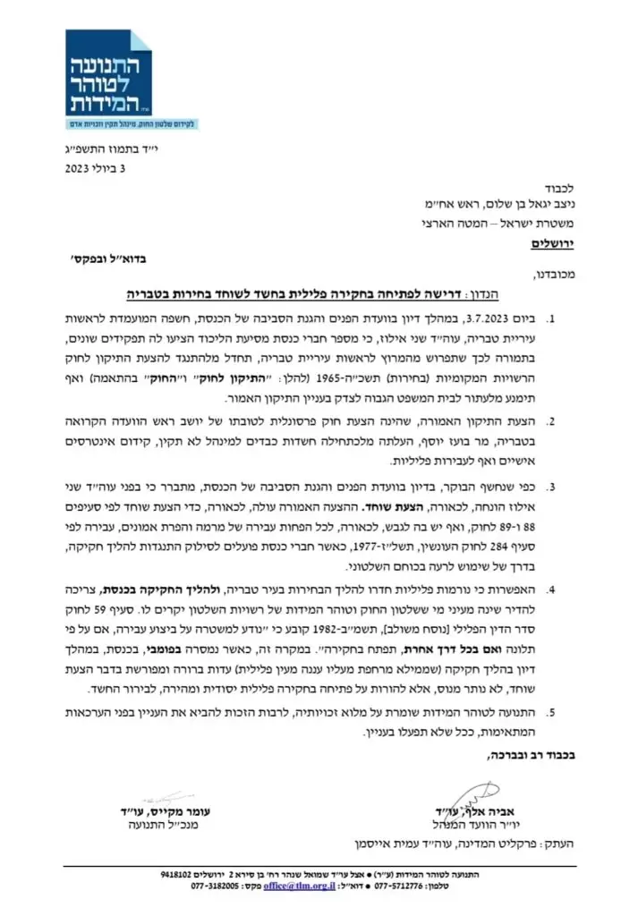 "מלכתחילה התרענו כי חוק בועז יוסף הוא חוק פרסונלי פסול, אנו מתנגדים לו מכל וכל ונעתור לבג"ץ אם יעבור. כעת ראינו כי לכאורה, גורמים בקואליציה מוכנים לחצות את הרף הפלילי כדי למנות את מקורבו של אריה דרעי לראש העיר, בניגוד לחוק, ו*הדבר מחייב חקירת משטרה מהירה, כדי להתמודד עם התופעה החמורה של שימוש בכוח שלטוני להשפעה על הליכי חקיקה ועל בחירות דמוקרטיות", צוין במכתב.