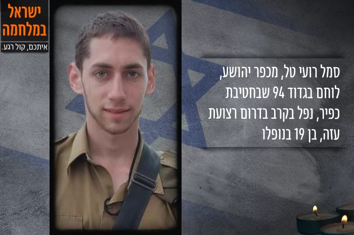 סמל רועי טל בן 19 מכפר יהושע, נפל אתמול במהלך הקרבות בדרום רצועת עזה. הוא שירת ביחידת כפיר לוחם בגדוד 94. הוא הניח אחריו הורים סמדר ועמי וארבעה אחים.