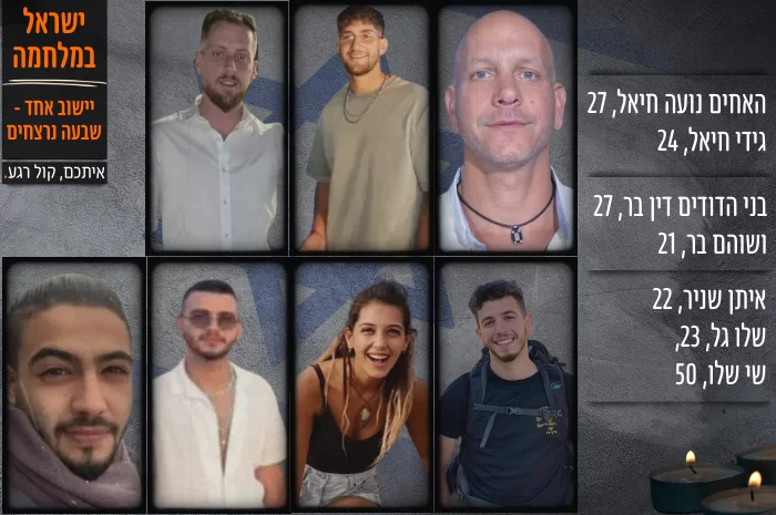 יישוב אחד, שבעה נרצחים: אבל כבד ירד בשבועיים האחרונים על היישוב אחוזת ברק במועצה האזורית עמק יזרעאל ששבעה מתושביו נרצחו במסיבת נובה שליד קיבוץ רעים. האחים נועה (27) וגידי חיאל (24), איתן שניר (22), בני הדודים דין (27) ושוהם בר (21), שלו גל (23) ושי שלו (50).