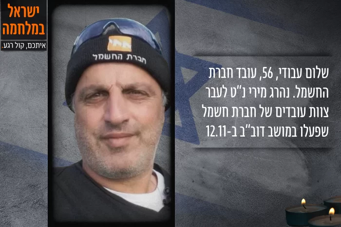 הותר לפרסום שמו של שלום עבודי, עובד חברת החשמל ותושב טבריה שנהרג אתמול מירי נ"ט ביישוב דוב"ב במהלך עבודות שביצע במקום עם צוותים נוספים. עבודי, בן 56, נשוי לאורלי ואב לשניים היה תושב העיר טבריה. שלום עבד כ-34 שנים בחברת החשמל באחזקת רשת החשמל בצפון הארץ.