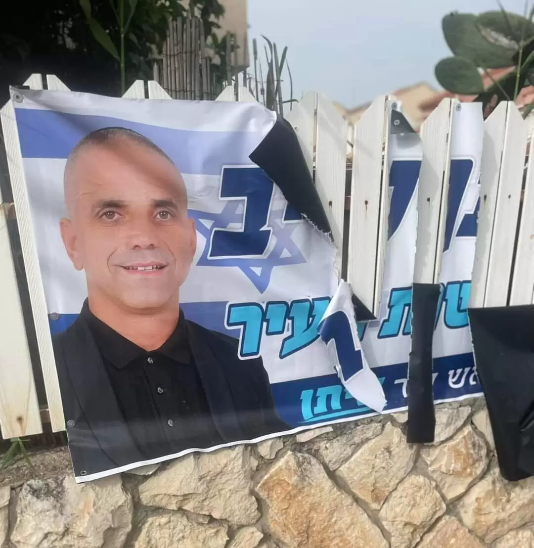 שלט בחירות של איתן טייב הושחת, תלונה הוגשה במשטרה